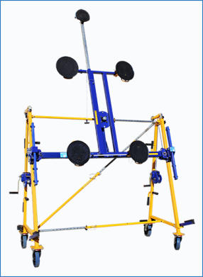 •Eliminates OHS issues such as strains and sprains resulting from manual handling of glass.•Reduces man power required for transportation and installation of heavy glass by up to 50 percent.•Prevents breakages and damage to glass in transport and installation.•Protects the workers whilst carrying glass.•Rotate long plates of glass.The Quattrolifts Nomad is designed to assist glaziers to unload, transport and install glass safely. It has a lifting capacity of 400 Kg's (880 Lbs). It can rotate glass measuring upto 4400 mm (180"). It has adjustments to allow for side and top pocket glazing. The Nomad is the world's first patented labour saving, cost effective device which offers a safer option to the manual handling of glass, slate and board on site.The Nomad was designed and developed by an Australian Chiropractor and Occupational Health and Safety Consultant, that assists glaziers with the installation, transportation and rotation of glass weighing up to 400 kg (880 lb).The Nomad has received the following awards: 2005 2nd Place - Best Solution For Sprain and Strain Injuries, WorkSafe Vic Australia Award; 2005 Finalist Engineers Australia Award; 2004 Invention Of The Year Award. The Nomad complies with all relevant European directives.